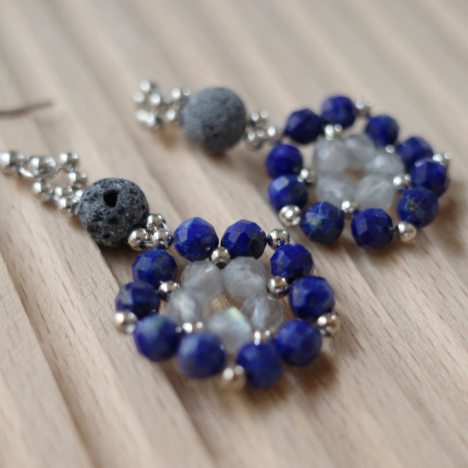 ピアスの溶岩部分(花輪上の一粒)にエッセンシャルオイルを1、2滴垂らし、香りをお楽しみください。ご入浴など、水に濡れる場合は外してください。